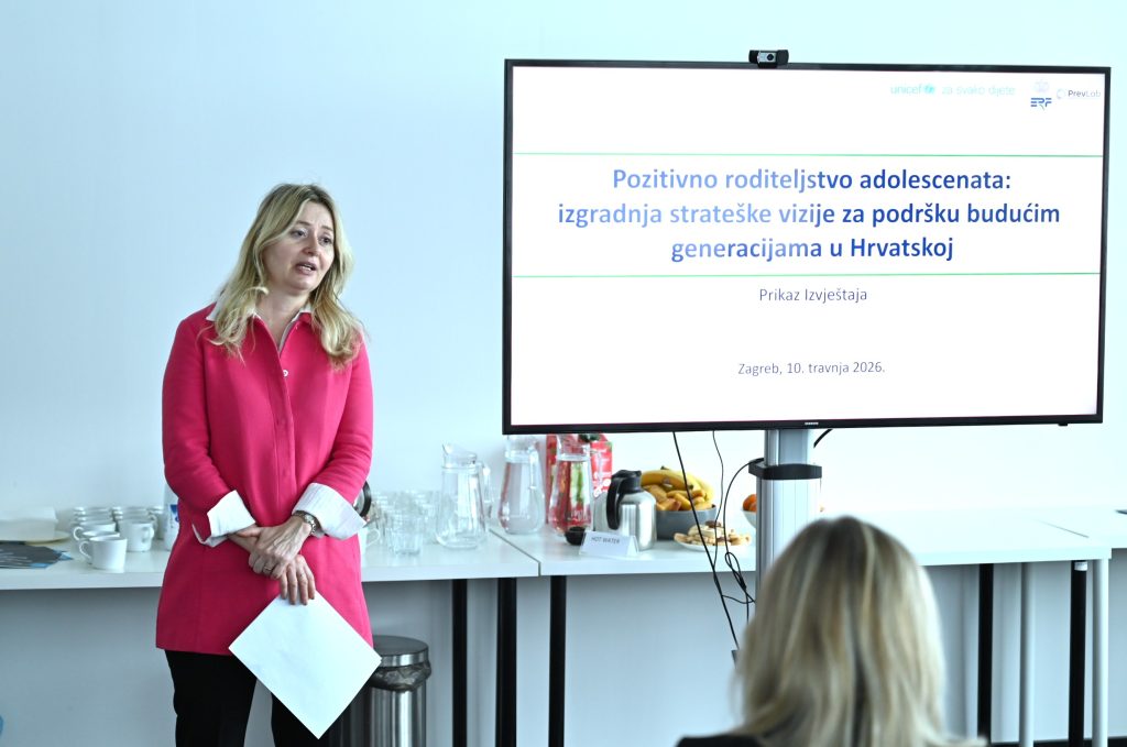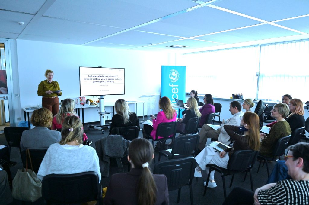 Ured UNICEF-a za Hrvatsku u suradnji s Edukacijsko-rehabilitacijskim fakultetom Sveučilišta u Zagrebu 10. travnja 2026. godine organizirao je završni događaj projekta „Pozitivno roditeljstvo adolescenata: izgradnja strateške vizije za podršku budućim generacijama u Hrvatskoj”, inicijative usmjerene na razvoj kvalitetnijeg sustava podrške djeci, mladima i njihovim obiteljima u Republici Hrvatskoj, a sa ciljem jačanja sustavne i stručne podrške roditeljima u razdoblju adolescencije djece.